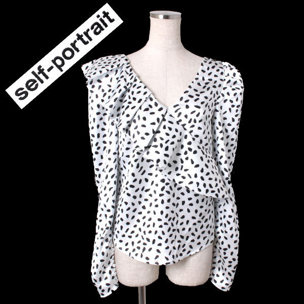 - self-portrait ポルカドットアシンメトリートップス sizeUK4 US0 ブラック ホワイト SP20-123 セルフポートレイト フリル self portrait