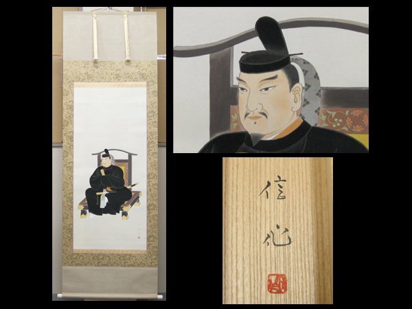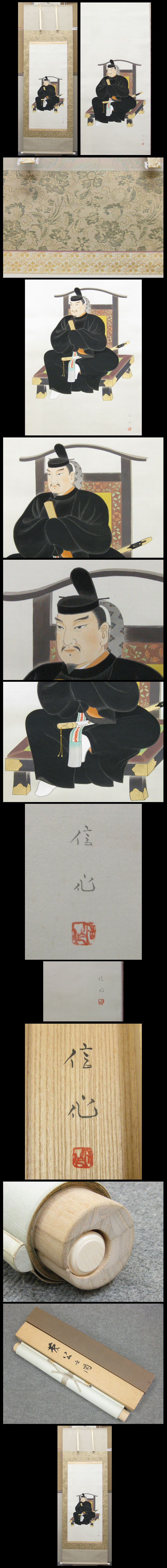 - 【心庵】掛軸 信仙 絹本 天神様 菅原道真/肉筆 太巻 共箱 真作 B137
