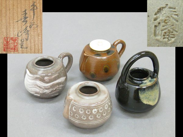 - 【心庵】京焼 平安 春峰/四滴茶入 共箱 茶道具 B577
