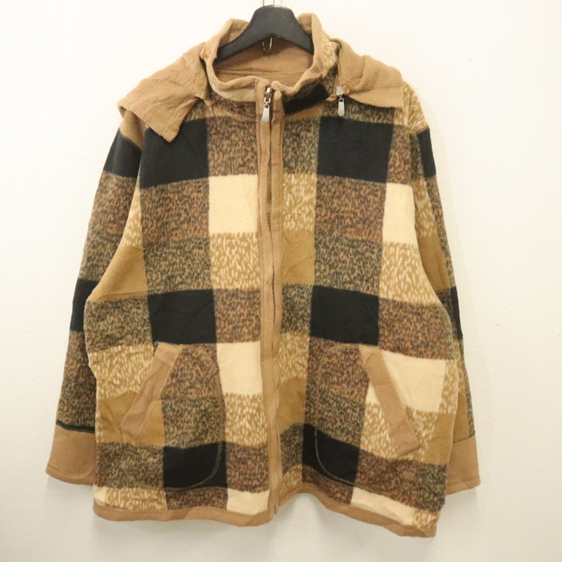 > t200 90sビンテージ MOFFI リバーシブル フリースジャケット■1990年代製 表記XLサイズ レディース ブラウン チェック アメカジ 古着 80s