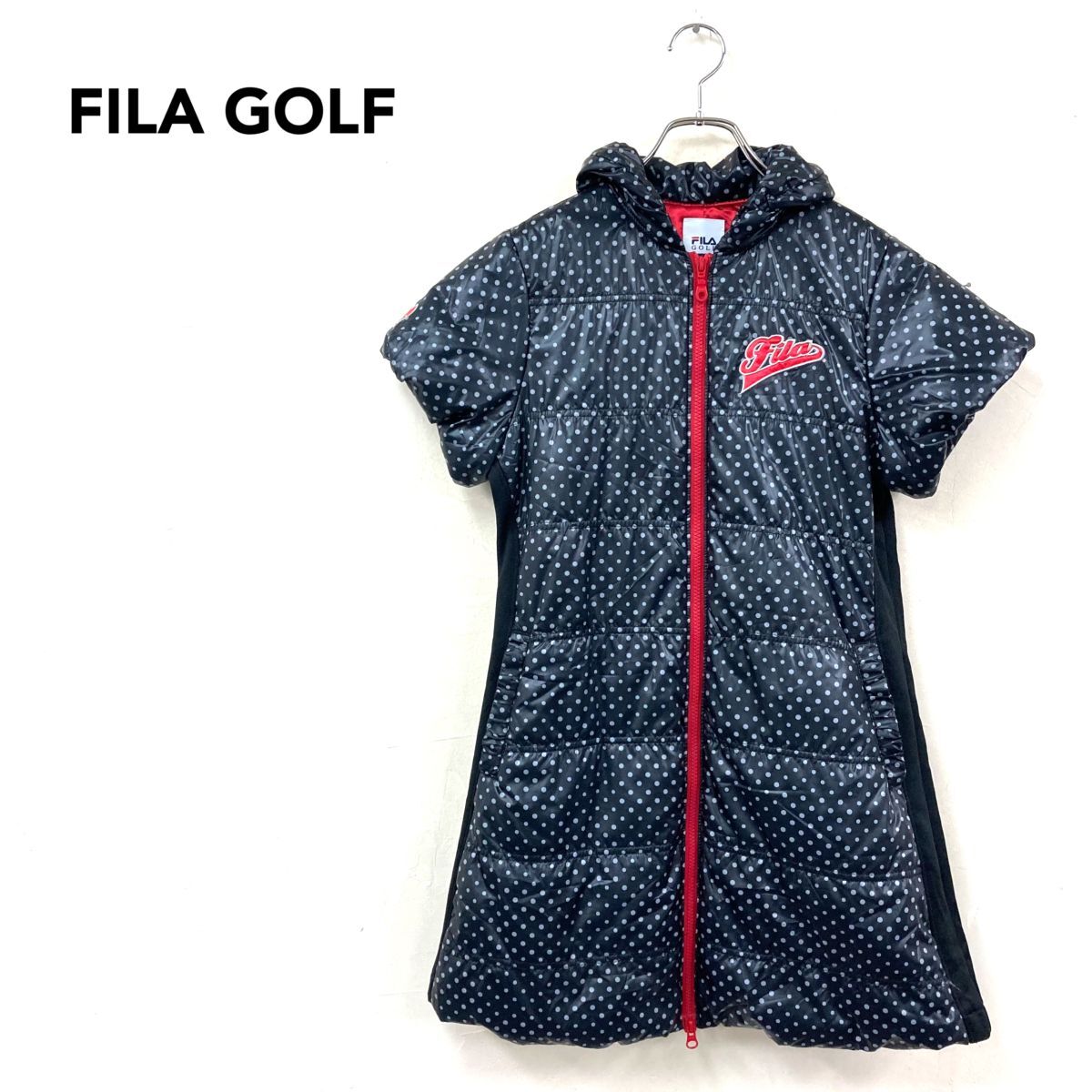 - 2O2011-W-N◆FILA GOLF フィラ ゴルフ 中綿ジャケット 半袖 ジップアップ ドット柄 スポーツ ゴルフウェア 防寒◆size:L ブラック系 ポリ