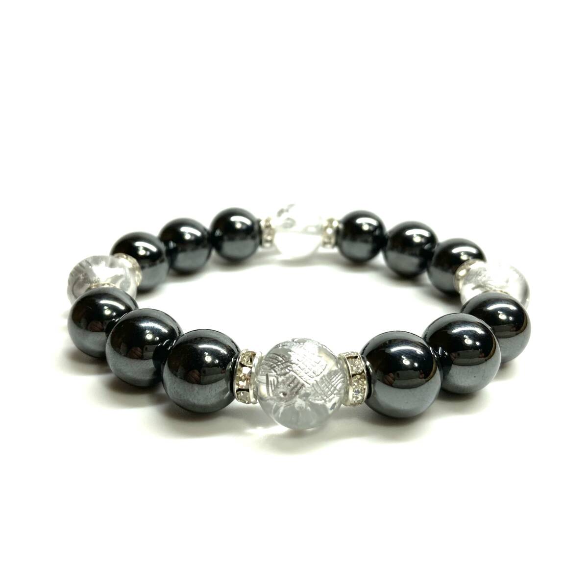 - 四神獣銀彫水晶×ヘマタイト 12mm パワーストーン ブレスレット天然石 青龍 白虎 玄武 朱雀 運気上昇 お守り 金運 四神獸 四神相応 S