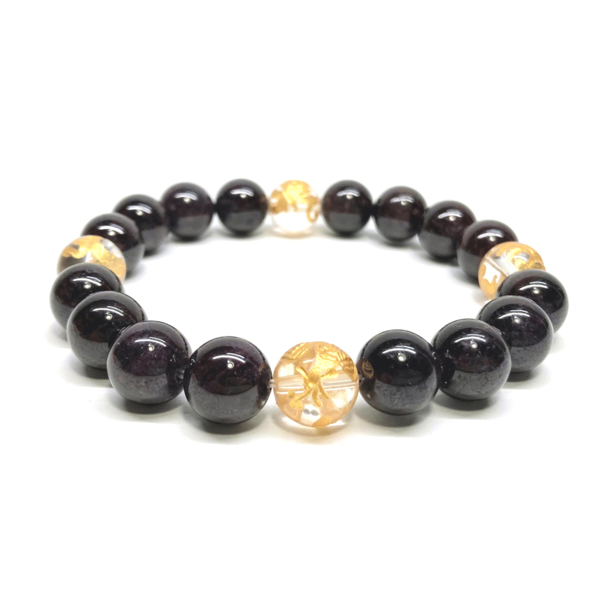 - 10mm 四神獣金彫水晶×ガーネット パワーストーン ブレスレット天然石 運気上昇 開運 金運 恋愛運 青龍 白虎 玄武 朱雀 ☆