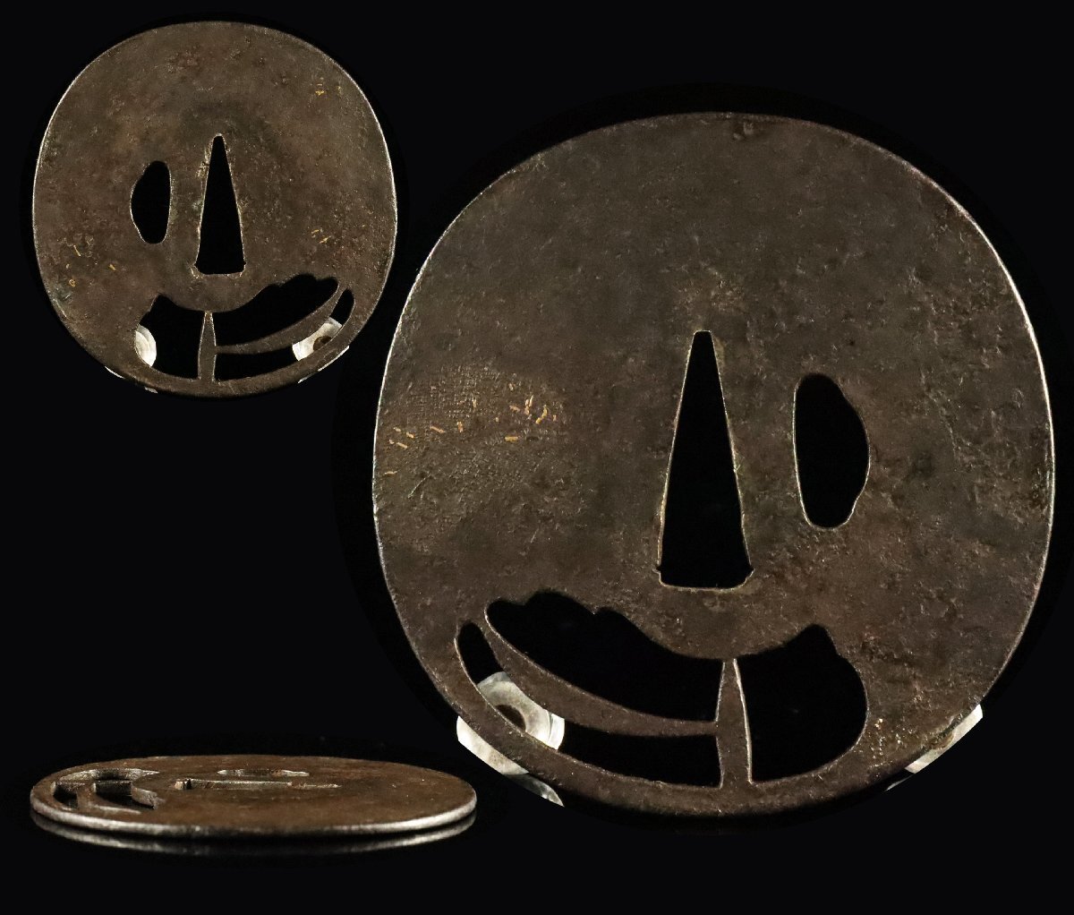 - 【ASAHI】室町期 無銘古甲冑師 厚み2.5mm 極薄 大鐔 素紋 小丸櫃孔 時代鉄鍔古鐔[710130i]