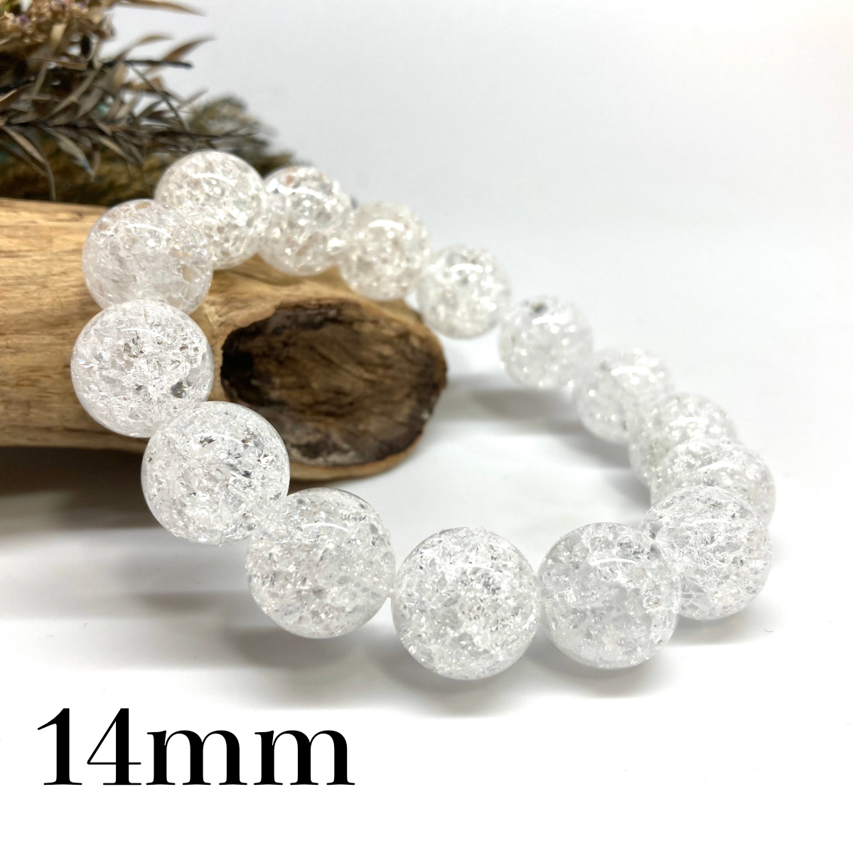 > クラック水晶 パワーストーン ブレスレット 14mm 天然石ブレス シンプル 開運 浄化 数珠ブレス メンズ 男性 プレゼント 14ミリ