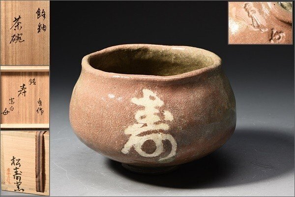 - U08106 幽香宗白 山田宗白 幽香 山田宗偏流 九世 家元 自作 楽 飴釉 茶碗 銘 「寿」 共箱 松寿窯 宗偏流 /G45