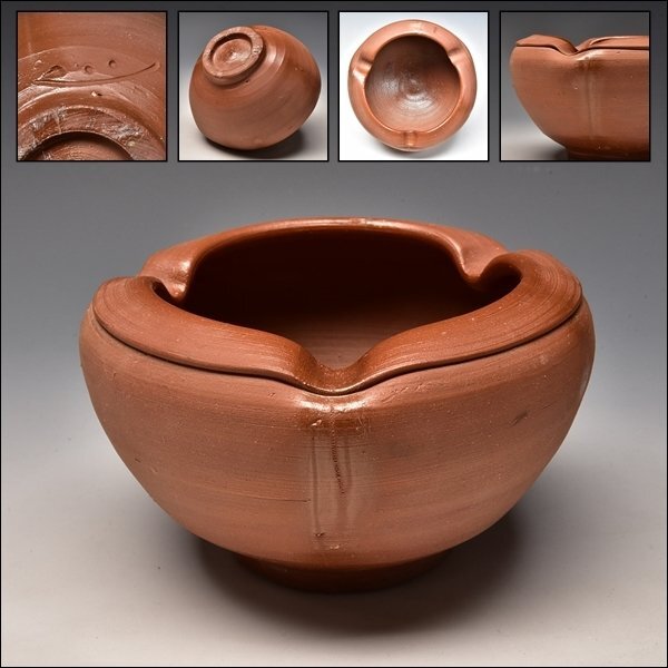 - SP5764 吉本正 備前 火襷 緋襷 ヒダスキ 器 灰落し 建水 茶こぼし 茶器 茶道具 煎茶 師 人間国宝 藤原啓