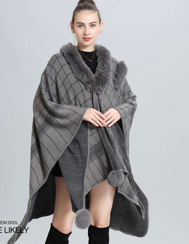- M1020 ポンチョレディース● 着心地抜群 20代30代40代 ● ニット素材 コート 防寒 羽織 グレー