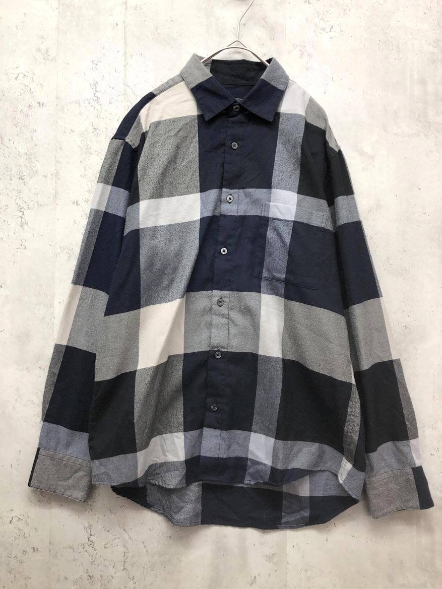 > ゆうパケットOK BLACK LABEL CRESTBRIDGE ブラックレーベル クレストブリッジ ビックスケールCBチェック シャツ sizeM/l紺系 ◇■◎