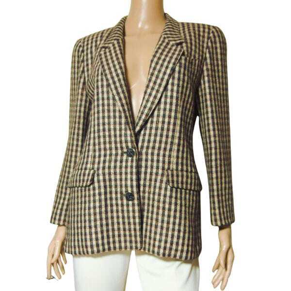> 美品/レリアン Leilian テーラードジャケット 表記 9号 М 相当 古着 茶 ブラウン レディース 秋 冬 毛 ウール 絹混 チェック クラシカル
