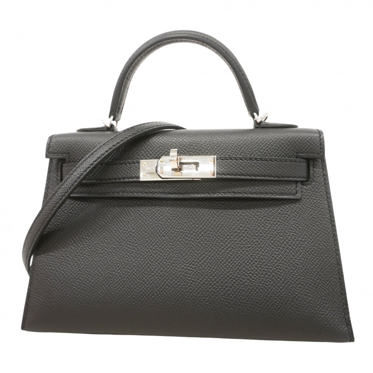- ★SALE【5ia0789-e-g】エルメス ショルダーバッグ ミニケリー ヴォーエプソン ブラック シルバー金具 B刻印【中古】レディース