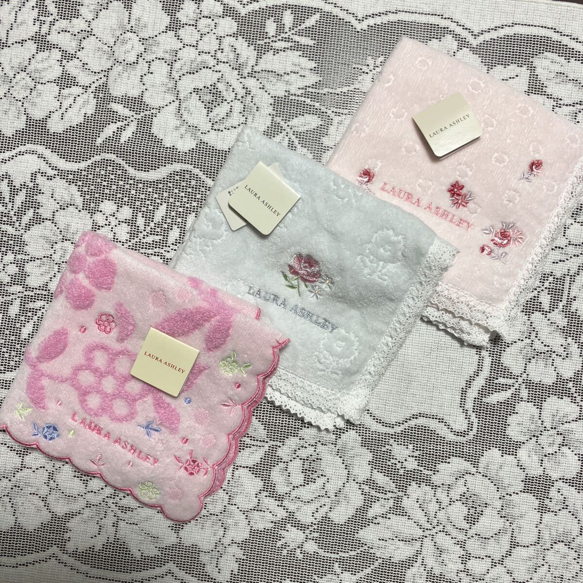 - 送料無料 ローラアシュレイ タオルハンカチ3枚セット♪♪ブランドハンカチ 大人可愛い