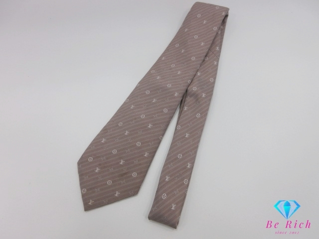 > ルイ ヴィトン LOUIS VUITTON ネクタイモノグラム柄 グレージュ シルク 絹 ロゴ 総柄 ビジネス スーツ 小物 【中古】 bh2645