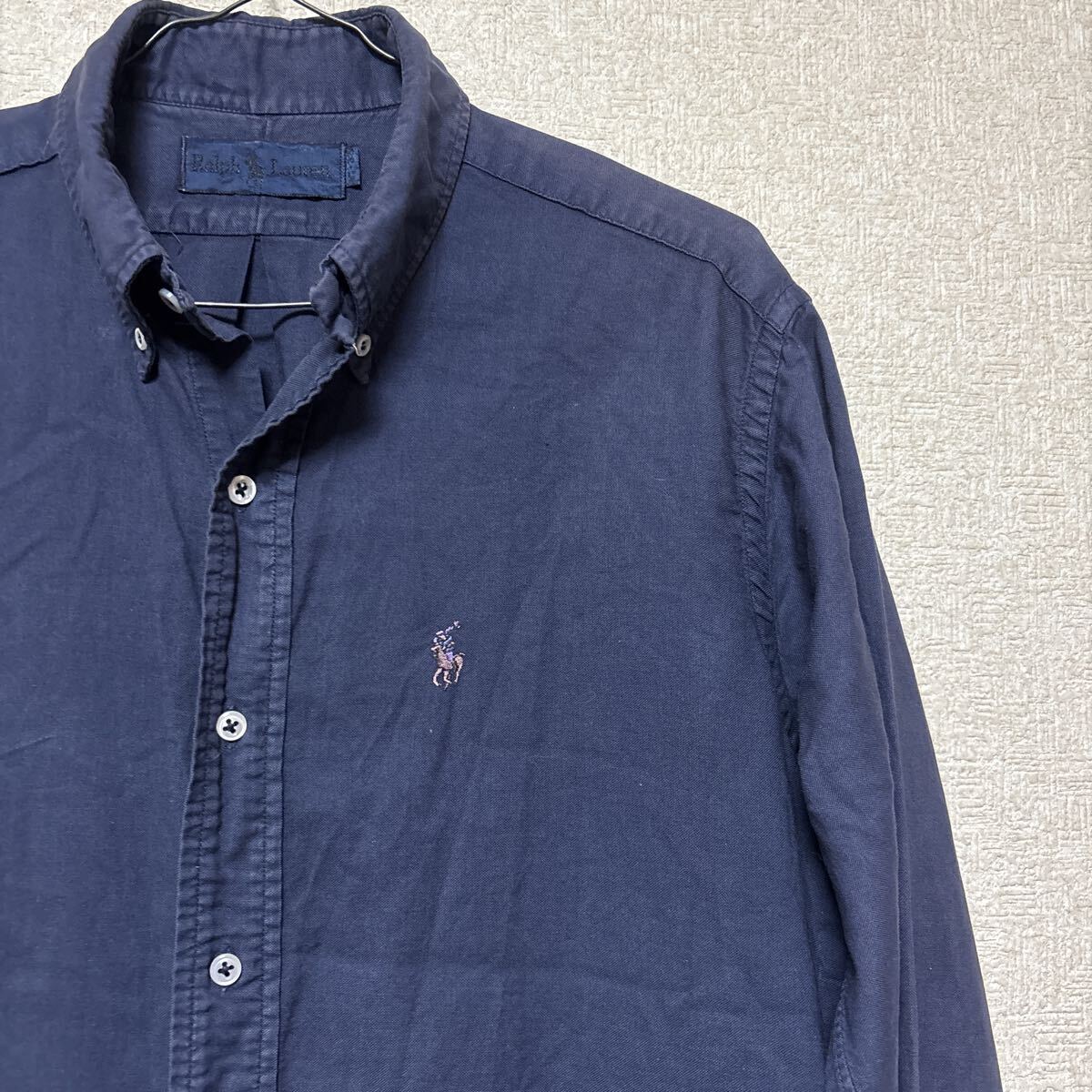 - 【後染め加工】 Ralph Lauren ラルフローレン 16-33 長袖シャツ ボタンダウンシャツ メンズLサイズ相当 ネイビー