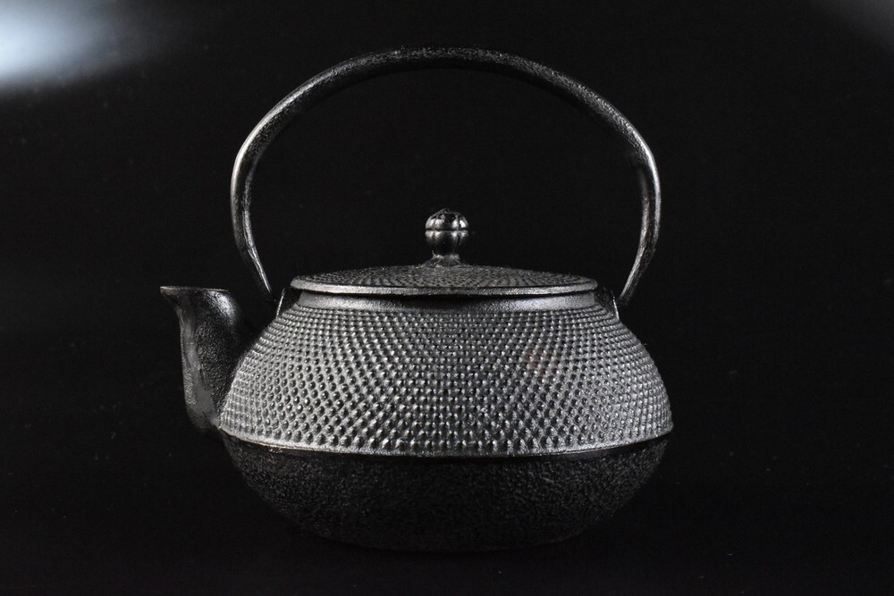 - 【雲】某名家買取品 鉄製 あられ柄 鉄瓶 在銘 古美術品(急須旧家蔵出) F8073