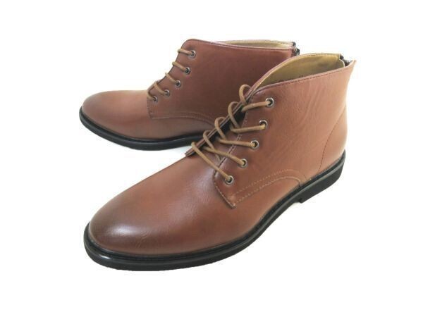 - 1円~L0121新品AAA軽量編上げ/バックジップアッププレーントゥブーツ25.5㌢茶♂