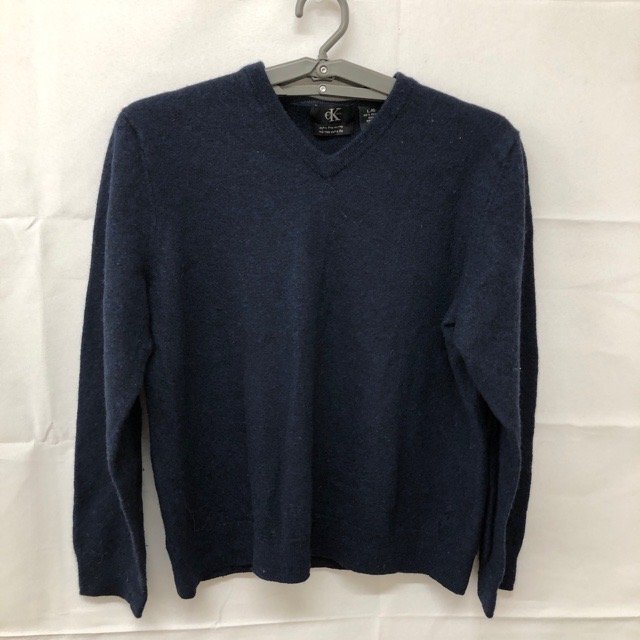 - C89 カルバンクライン L アメリカ古着 メリノウール クルーネック 長袖 ニットセーター ネイビー Calvin Klein レディース