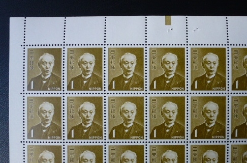 - 大蔵銘より 1円 前島密 暫定版 カラーマーク上 100面シート 未使用 完美品 大シ-2-2