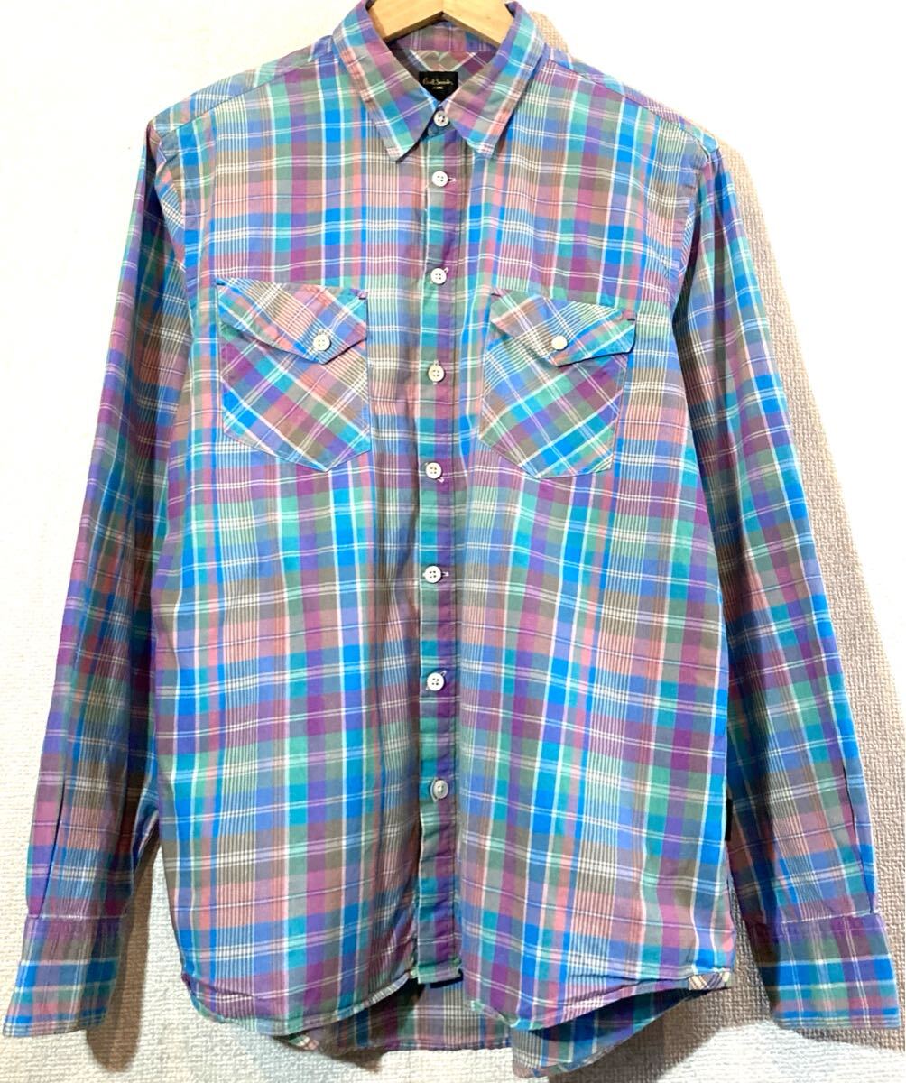 > Paul Smith JEANS★シャツ★マドラスチェック★デザインボタン★アシンメトリー★ポールスミス★定価23,000円★淡色★パープル★紫緑紺桃白