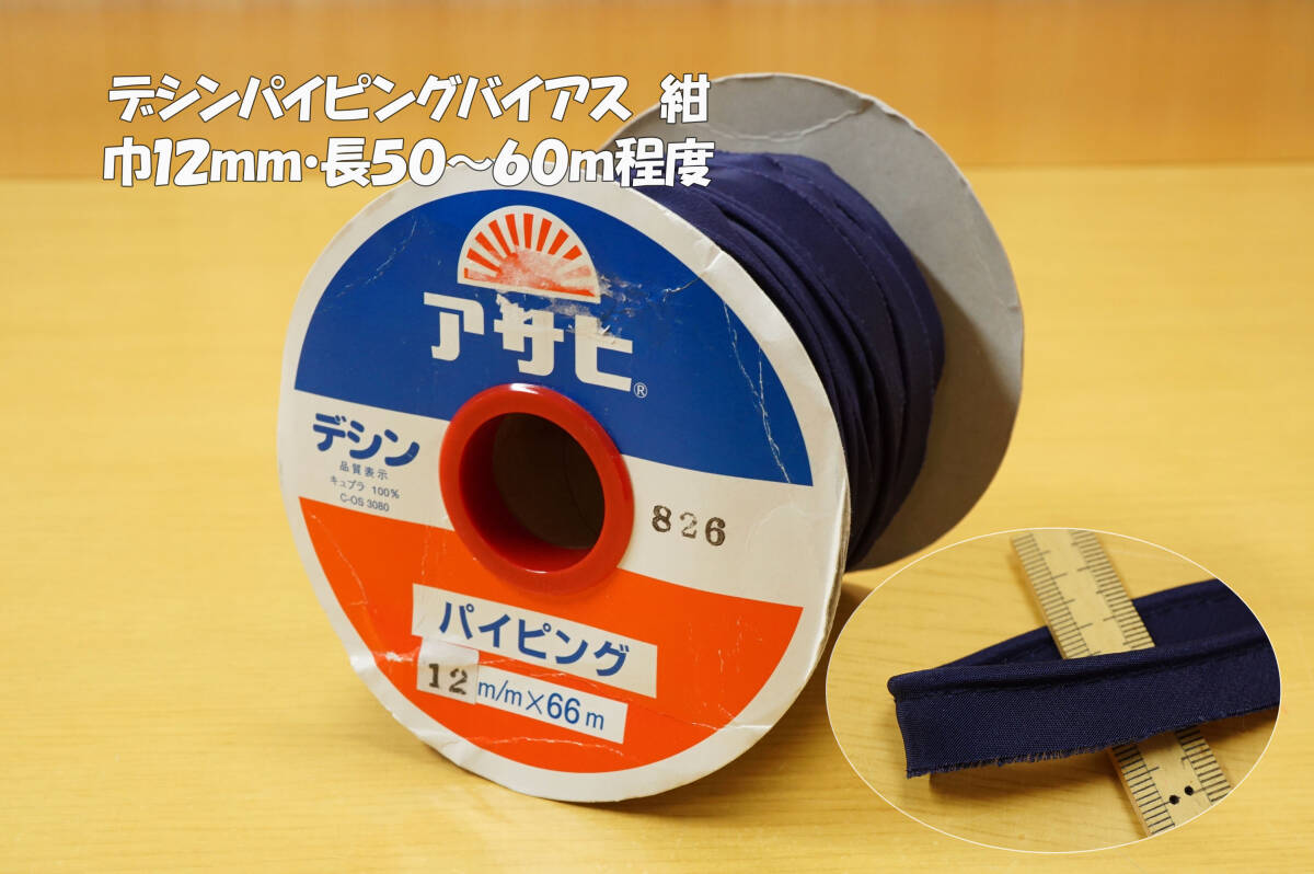 - デシンパイピングバイアス 紺長50~60m程度巾12mm ジャケット ワンピース パンツ 袖口裾アクセント バッグ 帽子手芸