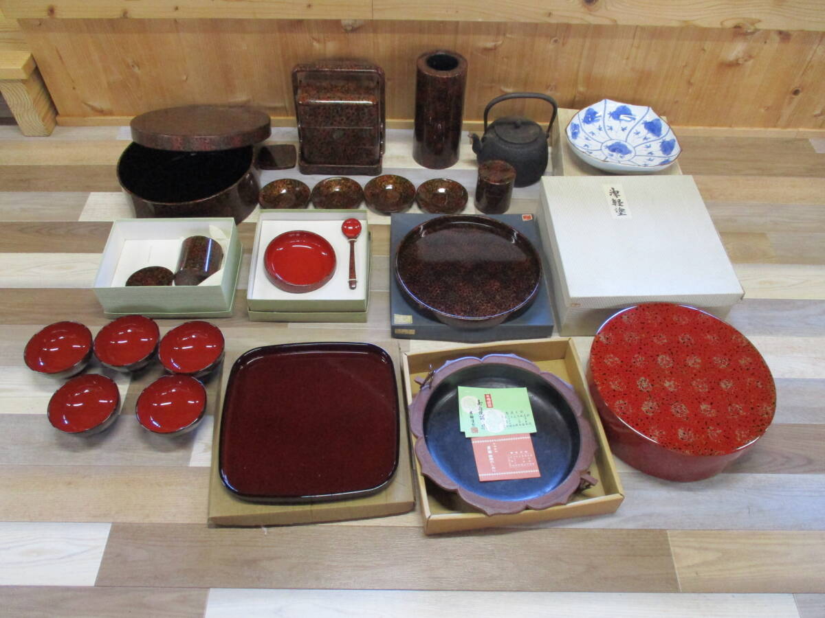 - 【商品詳細必読】 雑器 漆器 津軽塗 重箱 茶筒 お盆 有田焼 大皿 南部鉄器 鉄瓶 すき焼き鍋 など おまとめ 激安1円スタート
