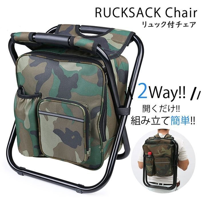 > リュックチェア 折りたたみ 椅子 リュックサック 保冷バッグ 保温 アウトドア 行列 運動会 キャンプ バーベキュー 7990405 カモフラ 新品