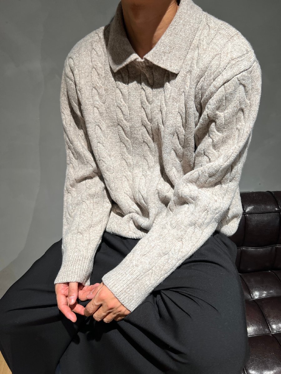 - オートミールXL【送料無料】★ブルネロクチネリBRUNELLO CUCINELLI ★メンズケーブルニット セーター, クラシック翻襟デザイン, 秋冬メンズ