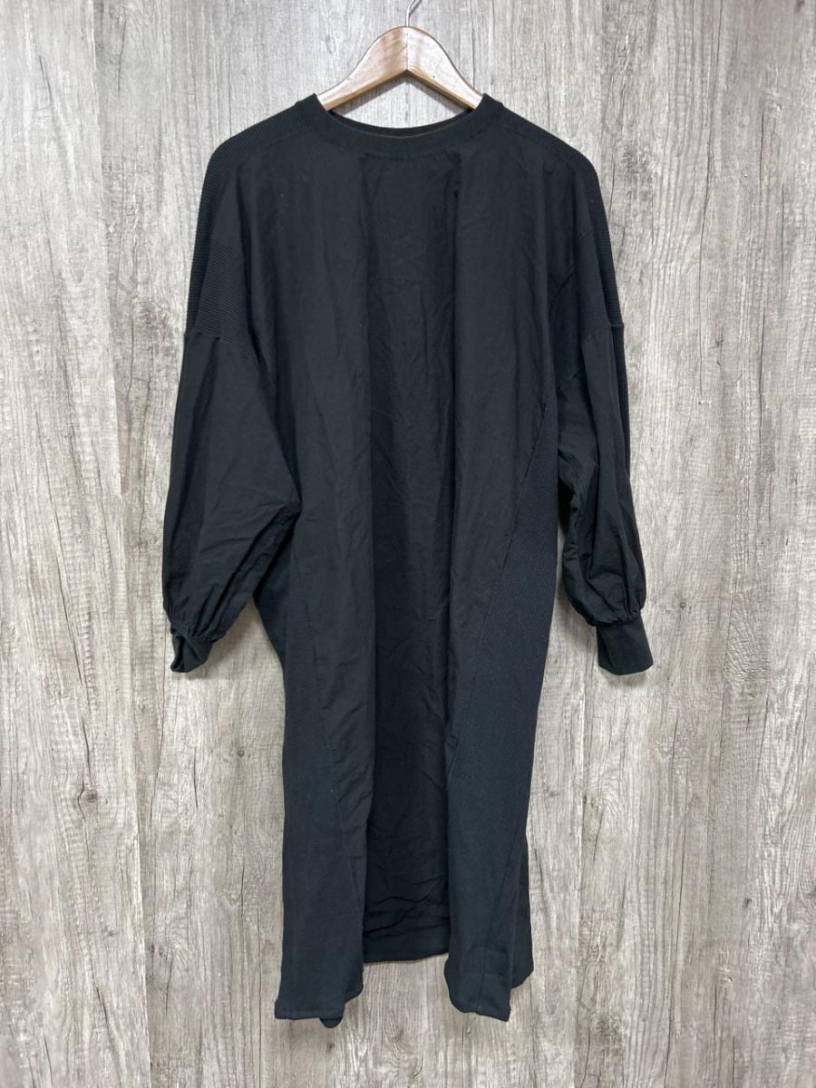 - Curensology 長袖 ワッフル 日本製 Iライン ワンピース sizeF/黒 ◆■◎ レディース