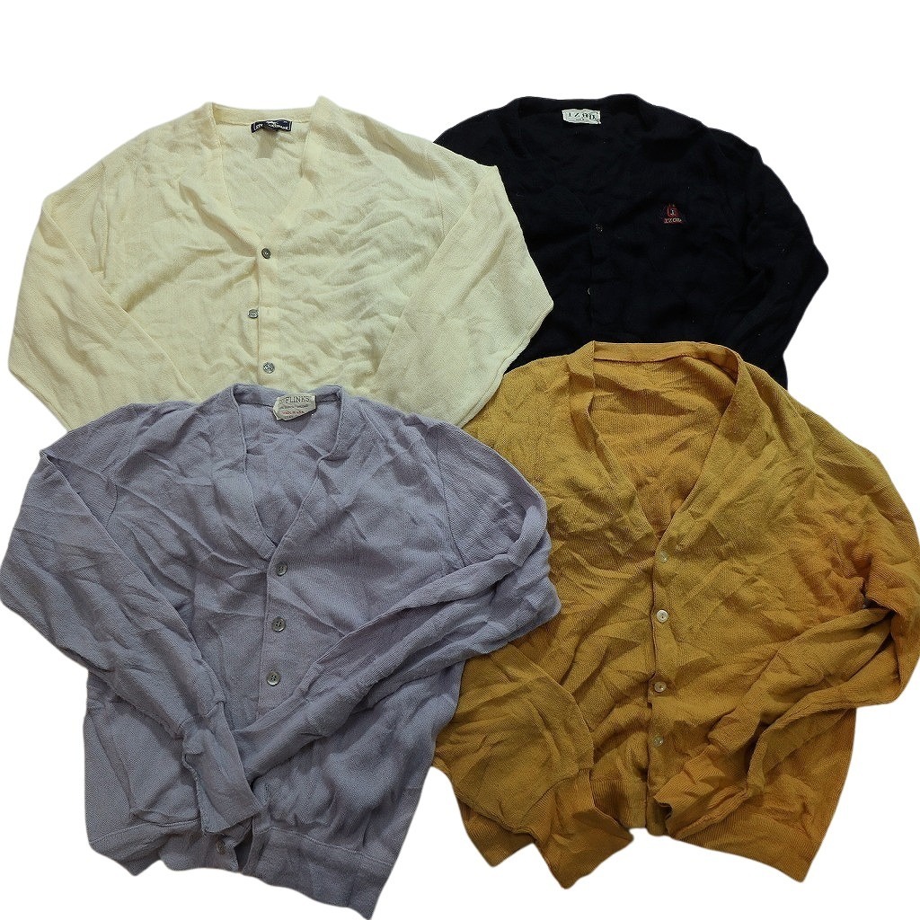 - 【訳あり】 古着卸 まとめ売り アクリル カーディガン セーター 21枚セット (メンズ ) 80's ブラック ワンポイント 中古 古着 WA3617