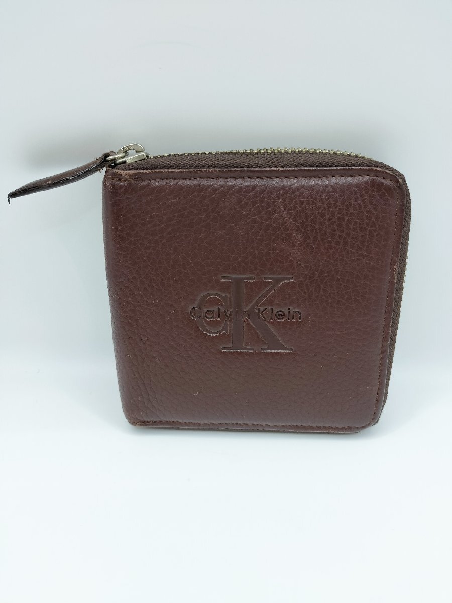 > CK/Calvin Klein カルバンクライン 二つ折り財布 ブラウン レザー コンパクト財布 現状品 J1705-1