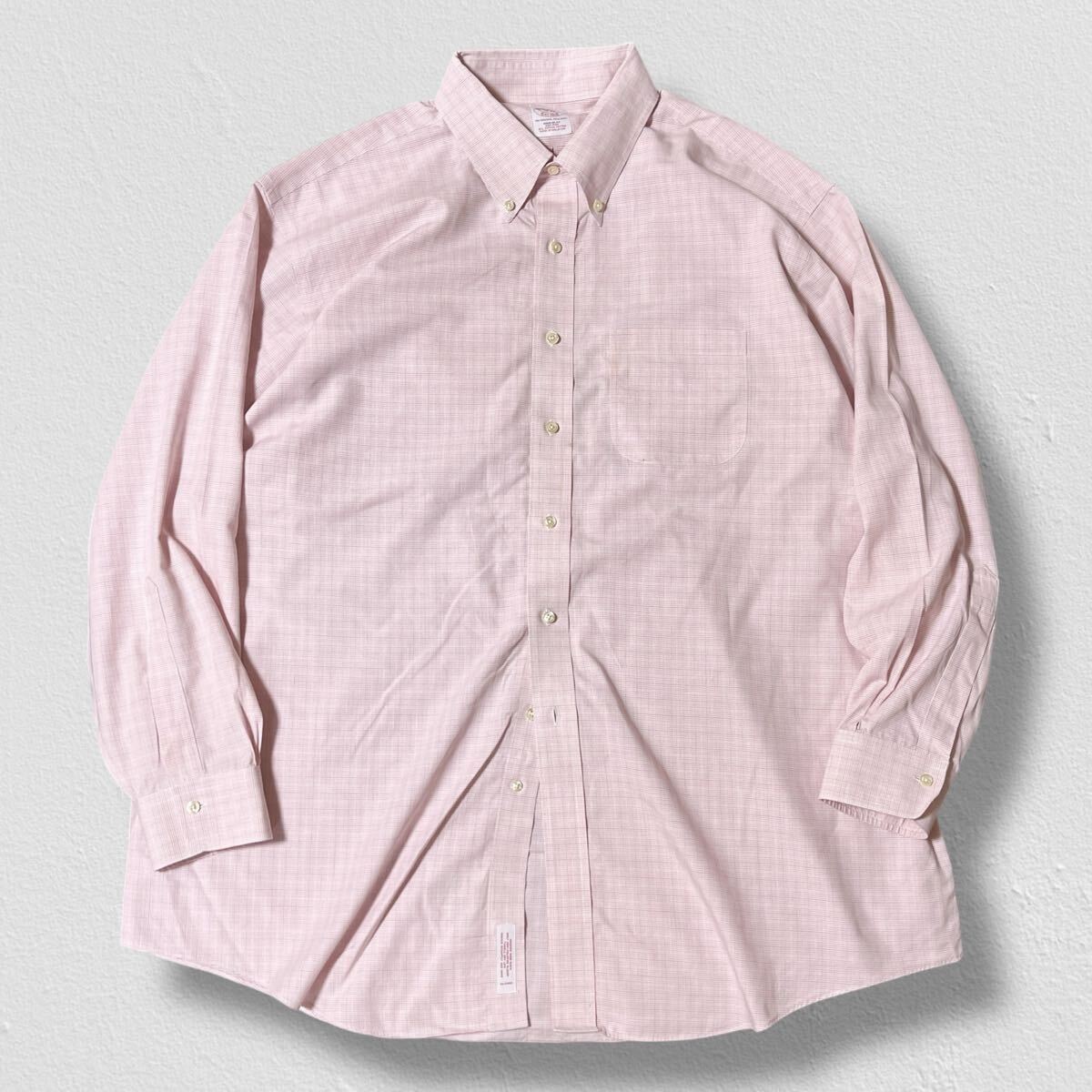 > Brooks Brothers Est.1818 長袖ボタンダウンシャツ レッド系×ホワイト チェック柄 18-34 ●洗濯プレス済●ネコポス可● シャツ 古着/744