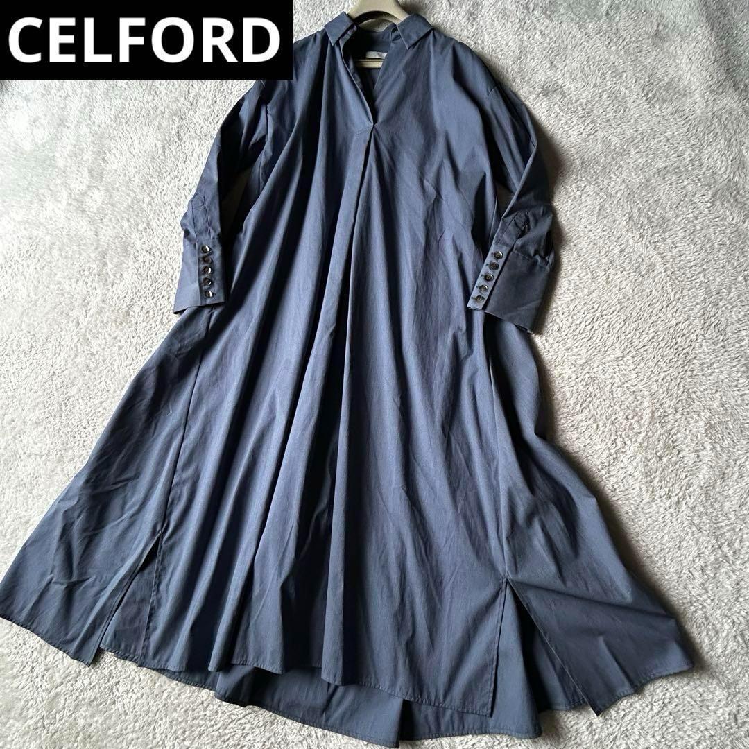 - 未使用CELFORDセルフォード マキシ丈シャツ ワンピースUV速乾たっぷりフレア優雅