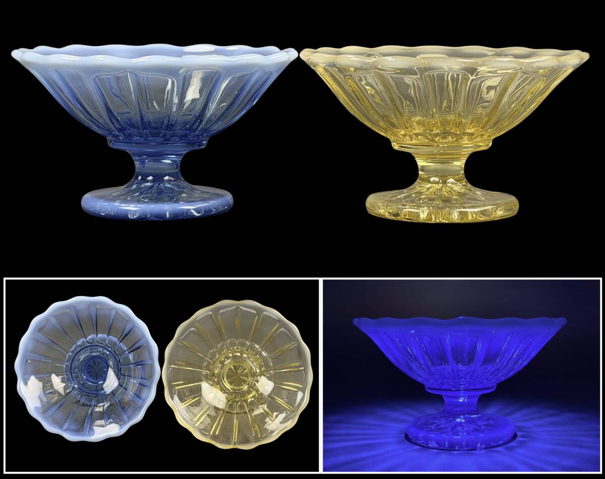 - 【偲】氷皿 フラッペ ペア サンデー コンフォート皿 高台皿 フルーツ皿 硝子 カット 青&黄 高さ約7㌢ r-975