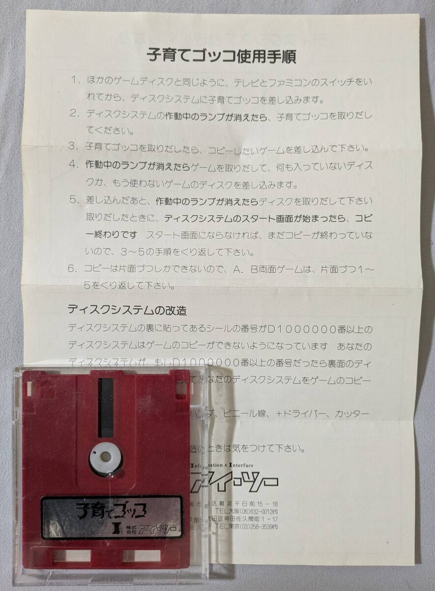 - 【起動確認済】ディスクシステム 子育てゴッコ (赤ディスク/説明書有)