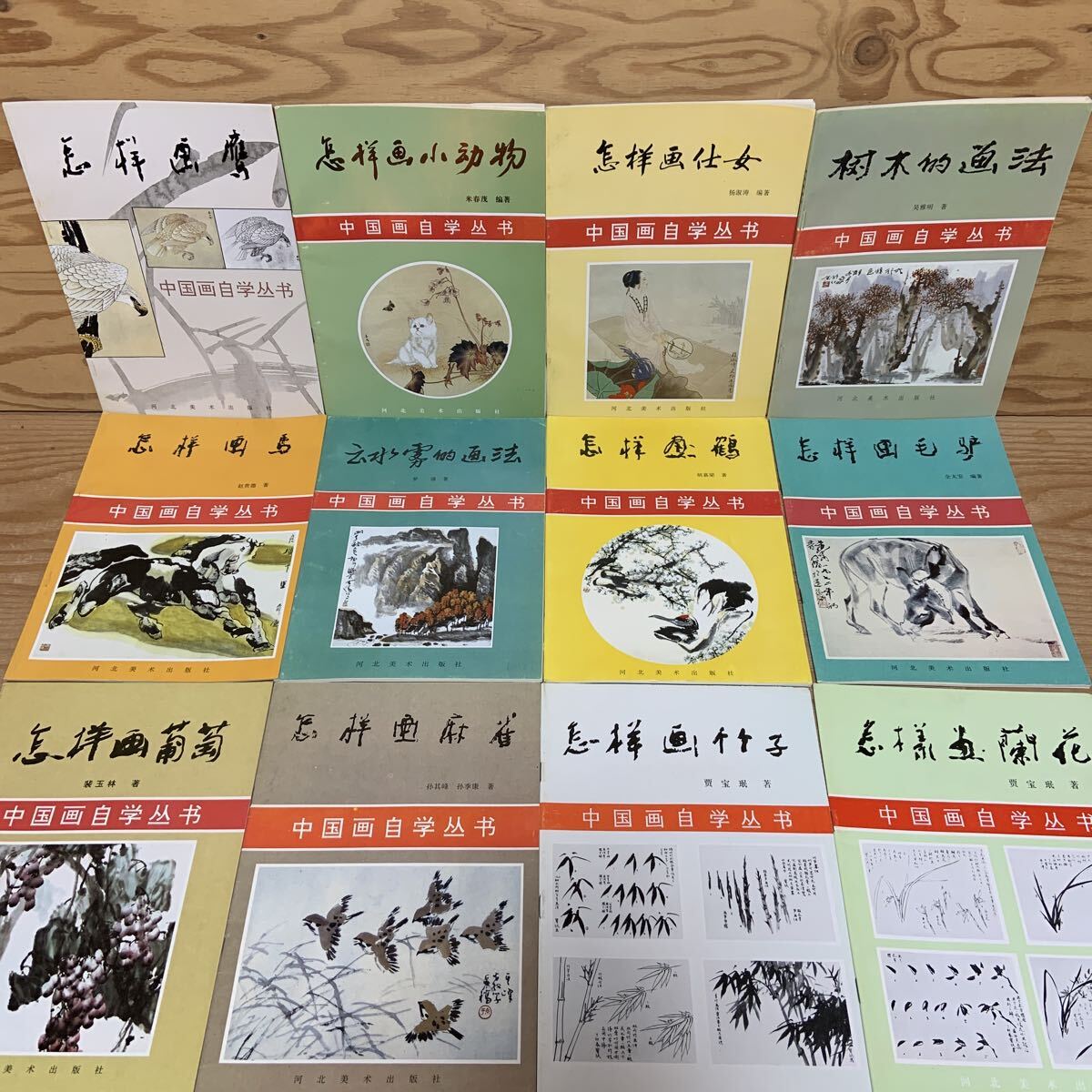 > Y11H4-251022 レア[中国絵画独習シリーズ まとめて12冊セット 小動物 女性 樹木 鶴 葡萄 雀 竹 ロバ 馬 河北美術出版社]中国語