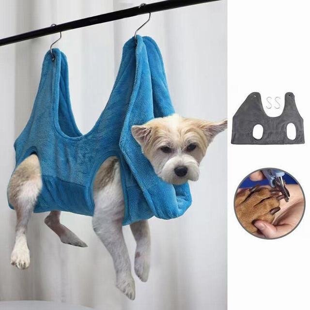 - トリミング ハンモック 足裏 毛刈り 防ケガ 犬 猫 爪 ペット爪切り ブルー
