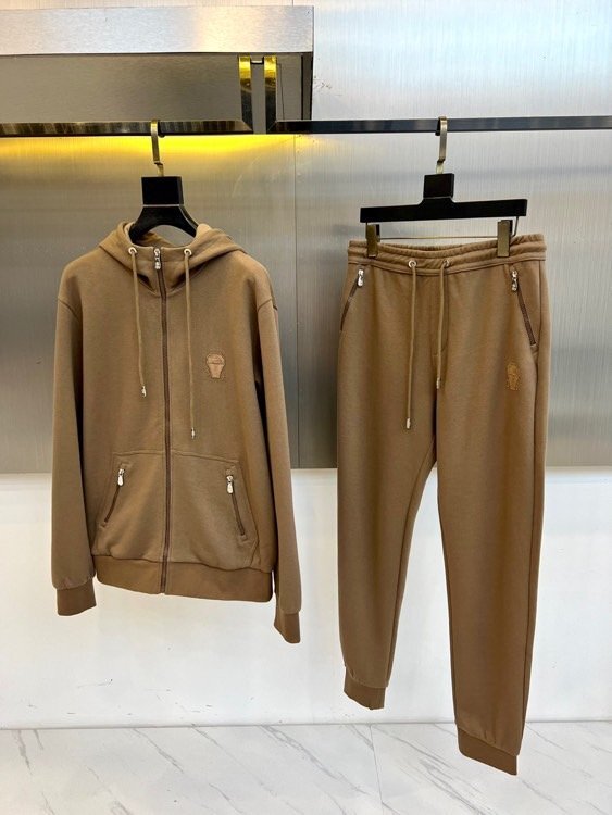 - ブラウンL【送料無料】★ブルネロクチネリ ★メンズスウェットセットアップ, フーディー&ジョガーパンツ, ,ジップアップ, サイドポケット付