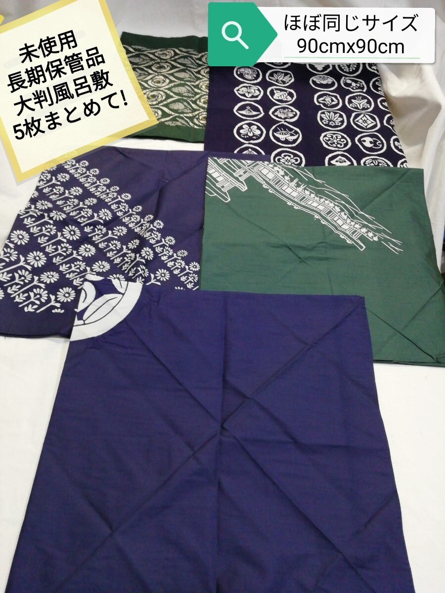 - g_t P706 【未使用長期保管品 綿100% 大判風呂敷 5枚まとめて!】 きれいで、とても丈夫です。大判風呂敷サイズほぼ同じ90cmx90cm
