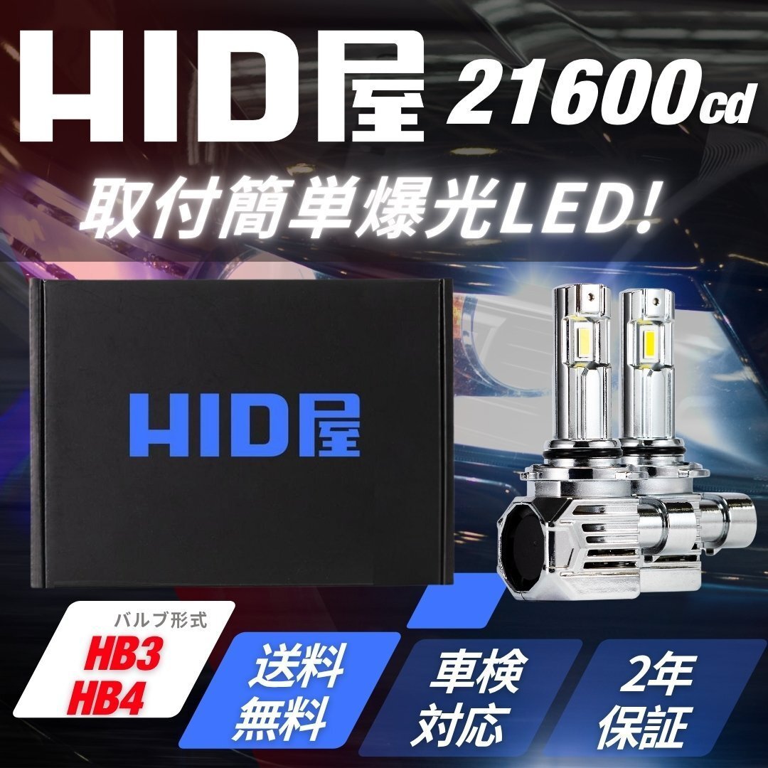 - 【HID屋】コンパクト爆光!【送料無料】LED 爆光 ヘッドライト HB3/HB4 バルブ 21600cd 車検対応 安心保証 配線レス 簡単取付