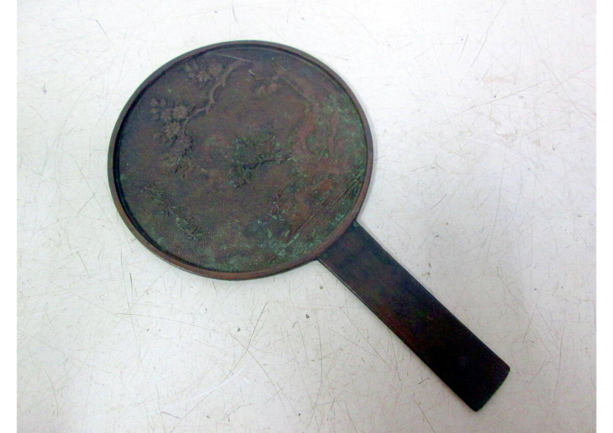 - 《510103》手鏡 / 藤原光長 長さ約20.5cm 幅約12cm 銅鏡 和鏡 古鏡 骨董品