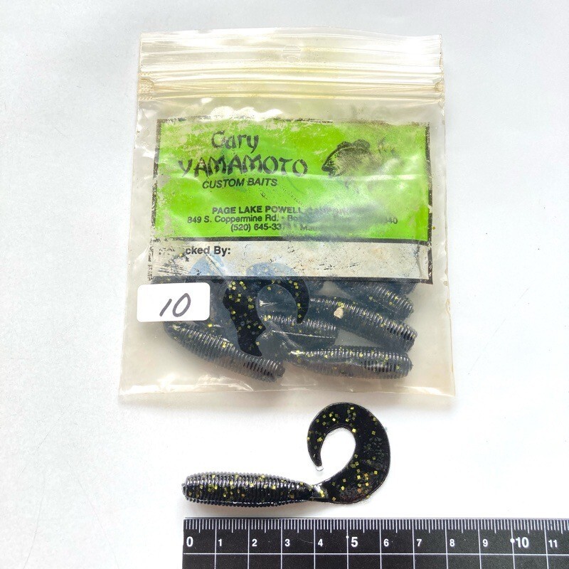 > 816045 ゲーリーヤマモト 4インチ シングルテールグラブ 10本 GARY YAMAMOTO #159 ミッドナイトブルー/チャートフレーク オールド品