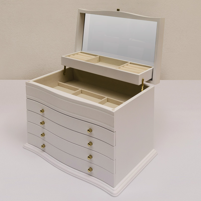 - ジュエリーボックス 木製 鏡付き 宝石箱 大容量 アクセサリー収納 ミニチェスト 大型ミラー付き 白 ホワイト JMC-210WH