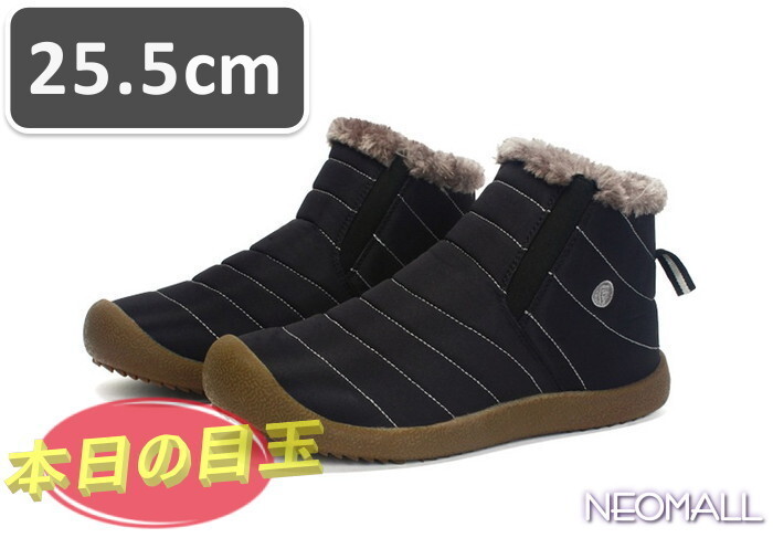 > ユニセックス スノーシューズ 【868】 25.5cm ブラック ムートンブーツ スニーカー ウィンターブーツ 裏起毛 防水 防寒 防滑 冬用靴 綿靴