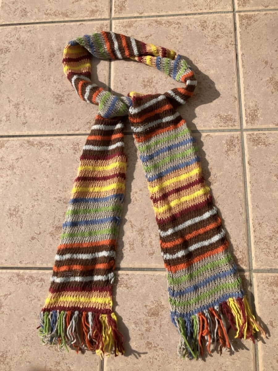 - ガイジンメイド、手編みウール/コットンカラフルボーダーマフラー タイプ-B
