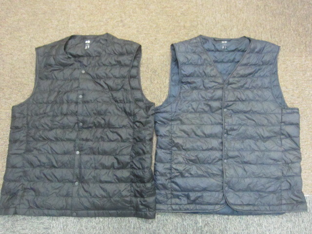 - ユニクロ ノーカラーウルトラライトダウンベスト 2枚セット メンズL 黒紺 襟なしダウンベスト 軽量インナーダウンジャンパー ライナー10009