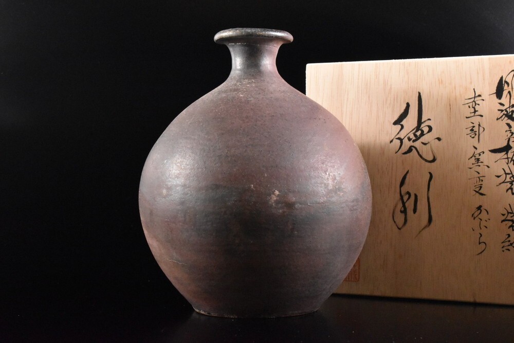 - 【雲】某資産家委託品 丹波焼 窯変花瓶 在銘 共箱 古美術品(花器花入旧家蔵出) F8661