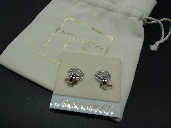 > ■美品■ NINA RICCI ニナリッチ ラインストーン クリップ式 イヤリング アクセサリー レディース シルバー系 DG7136