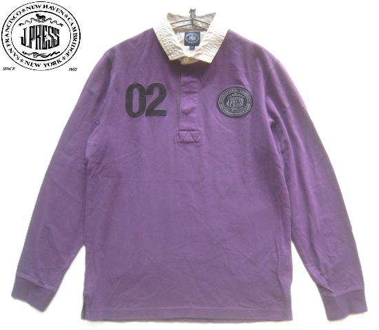 > 美品!!ジェイプレス J.PRESS*02・ロゴ刺繍 長袖ラガーシャツ M パープル 紫 ラグビー RUGBY トラッド アイビー プレッピー