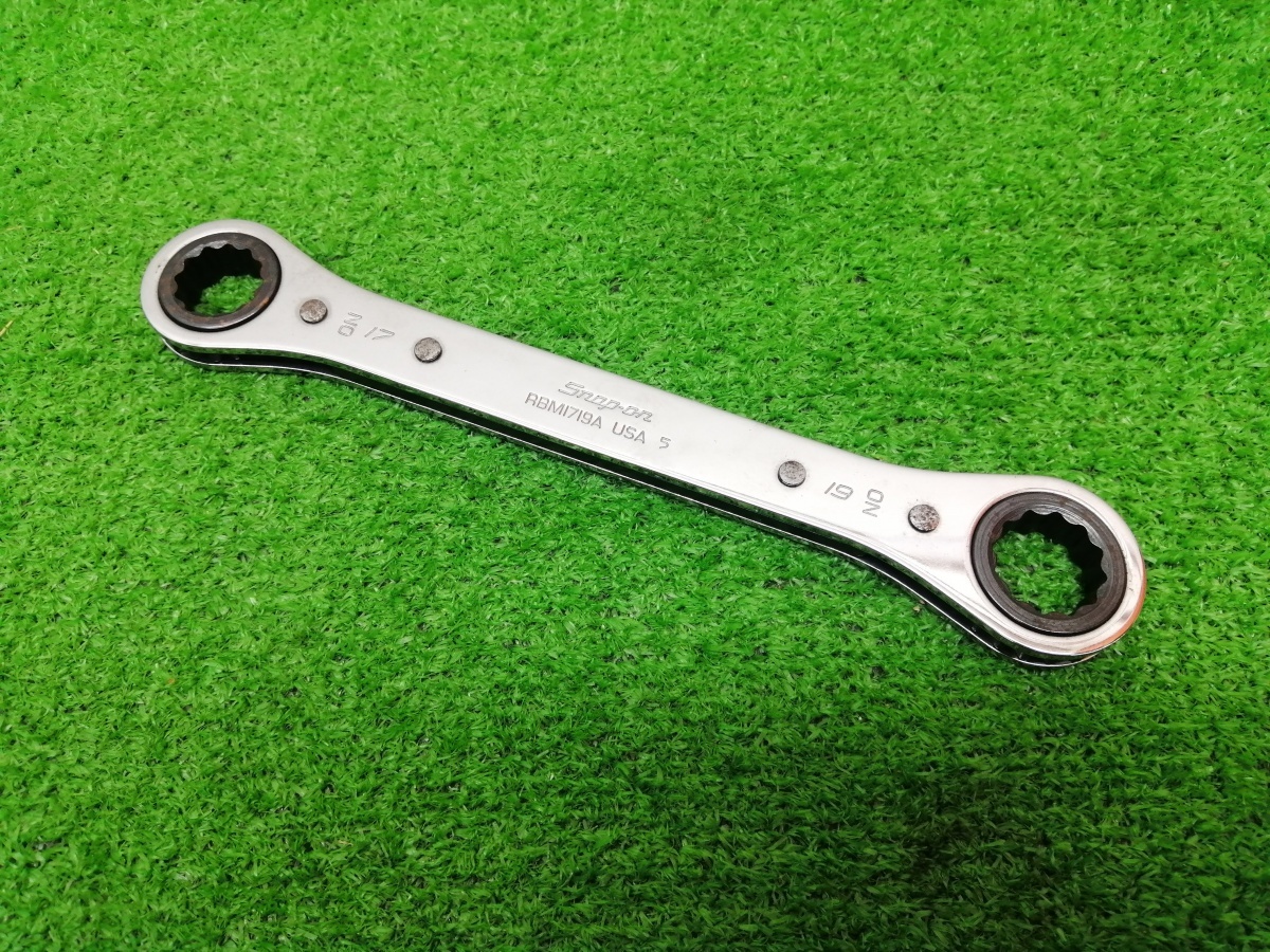 - 中古品 Snap-on スナップオン 板ラチェット メガネレンチ 17mm-19mm RBM1719A