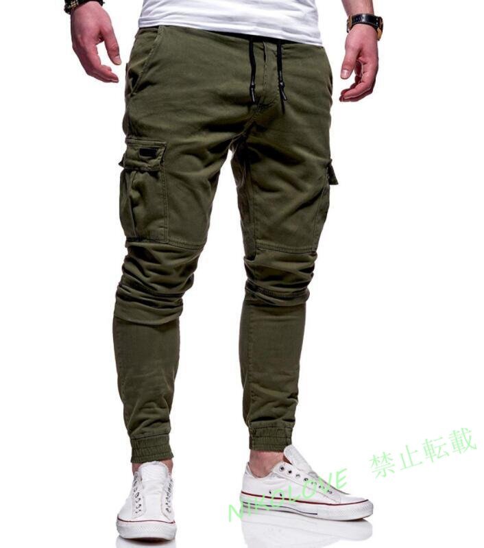 > ☆新品スキニーパンツ メンズ チノパン スリムパンツ ボトムス ストレッチパン ジョガーパンツ スウェットパンツ 美脚 無地 S~XXL 緑